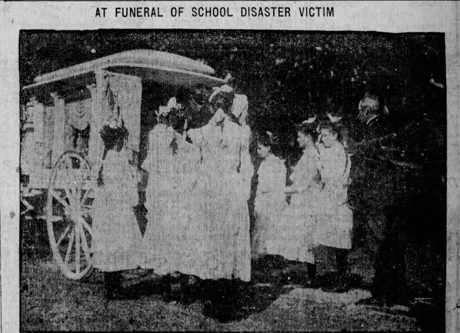 Most of the nine girls were laid to rest two days later, and their funerals attracted crowds of mourners from around the city. Seven of the girls were buried at the Pleasant Ridge Cemetery just across the street from the school – a location many saw fitting, since children often played there after school.
